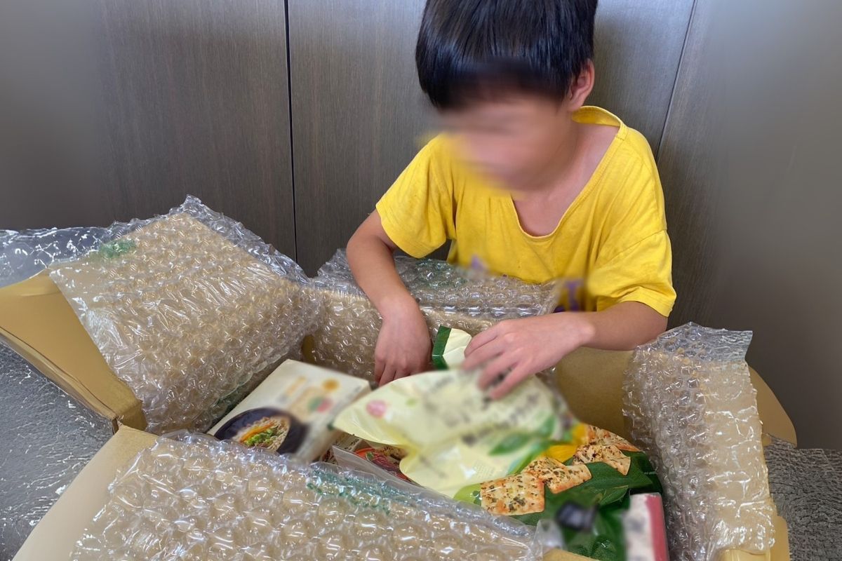 兒福聯盟的物資箱幫助減輕餐食開銷,又能讓孩子吃到平常較捨不得買的食材 ,媽媽大讚物資箱實用性高,更讓擔憂經濟的壓力少了一些些。